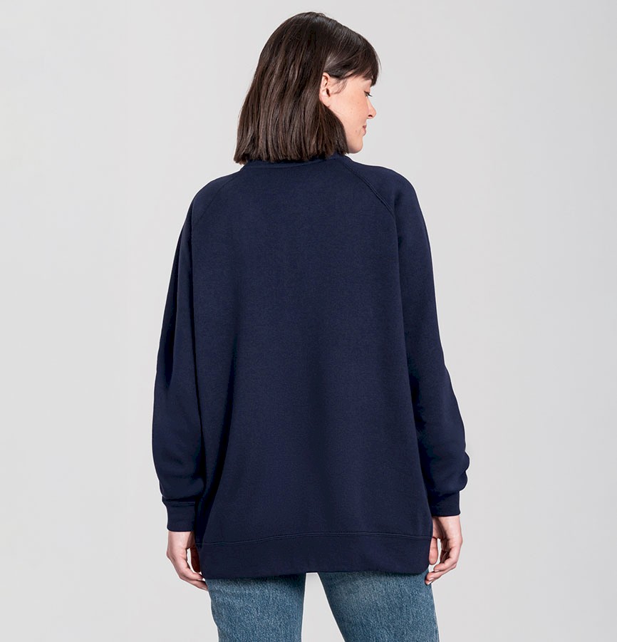 Rękawy skrojone razem z częścią ramienia i wszyte w jednym kawałku aż do nasady szyi. Fason raglanowy lepiej maskuje ewentualne niedopasowanie rozmiaru.