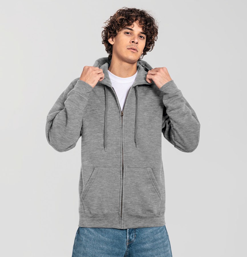 • wyświetlony produkt: szara rozpinana bluza unisex z kapturem